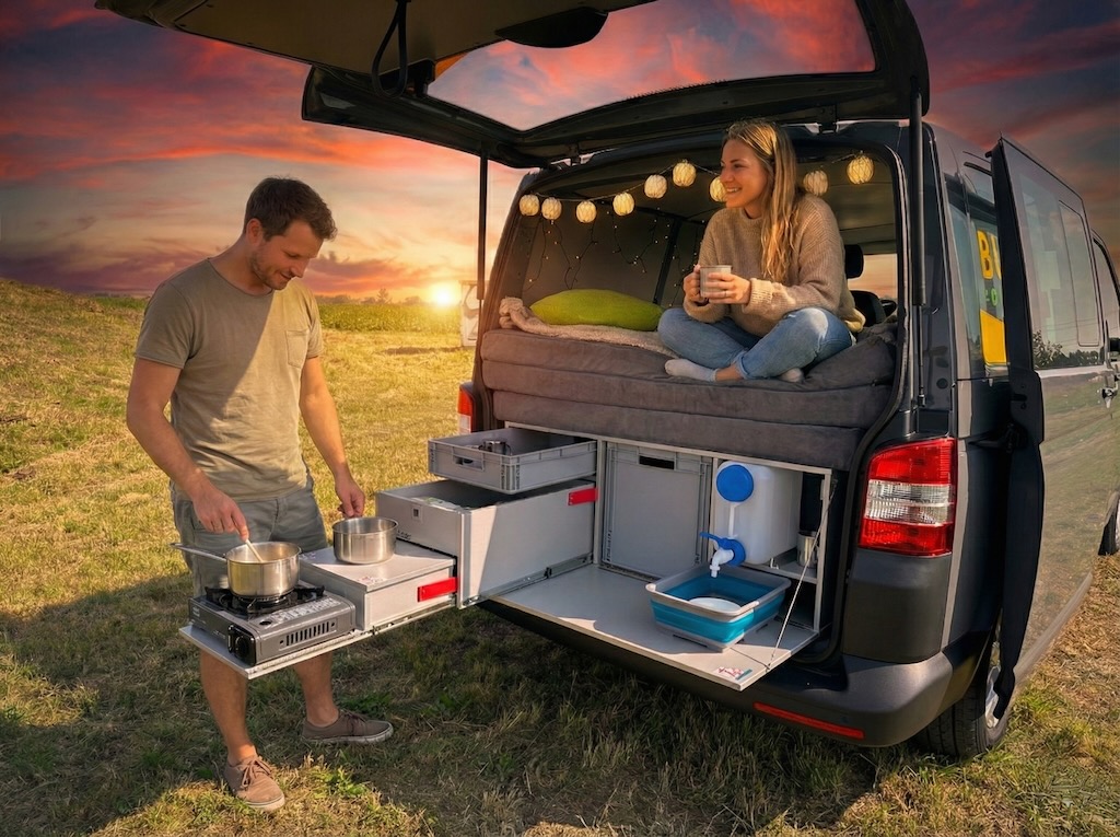 Mit nur wenigen Handgriffen verwandelst Du Deinen Camping Kastenwagen in einen gemütlichen, funktionalen Camper. Und das Beste: Die Module gehören zu den preiswertesten Systemen ihrer Klasse, ohne Kompromisse an Materialien oder Verarbeitung. Jedes Teil wird aus hochwertigen Komponenten gefertigt und erfüllt höchste Qualitätsansprüche, damit Du Dich unterwegs auf das Wesentliche konzentrieren kannst – Dein Abenteuer.