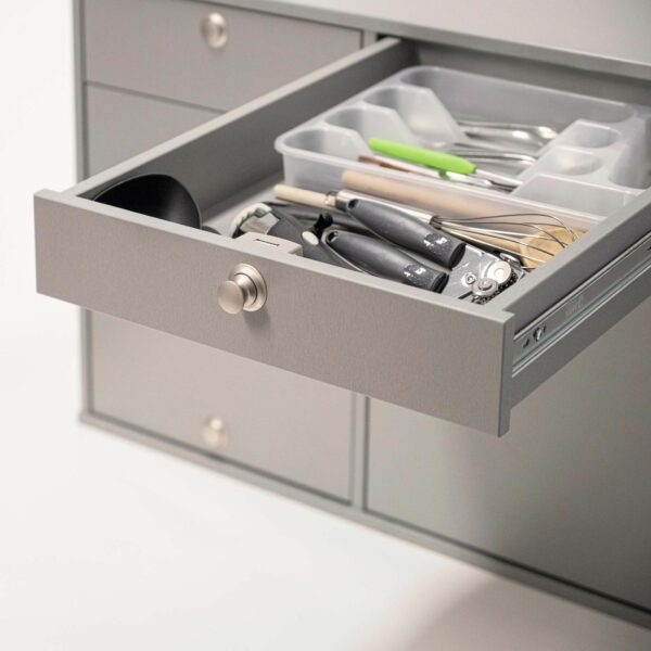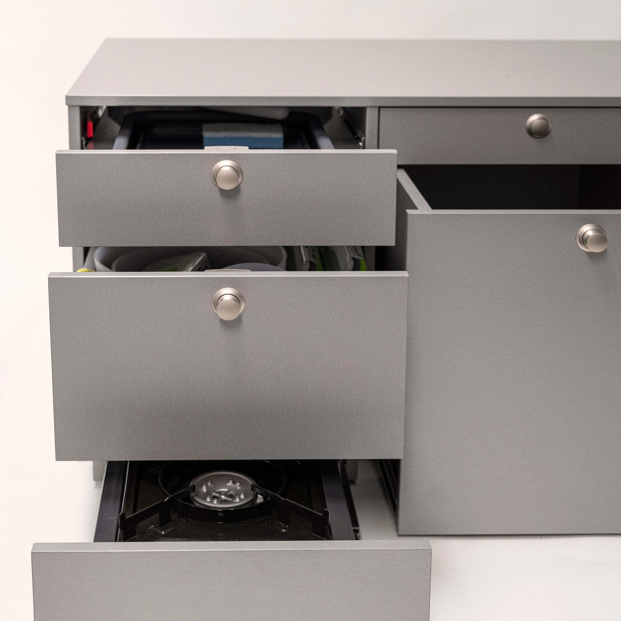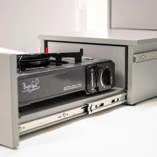 - Langer Schubladenauszug mit Laser-V2A Edelstahl-Arbeitsfläche
