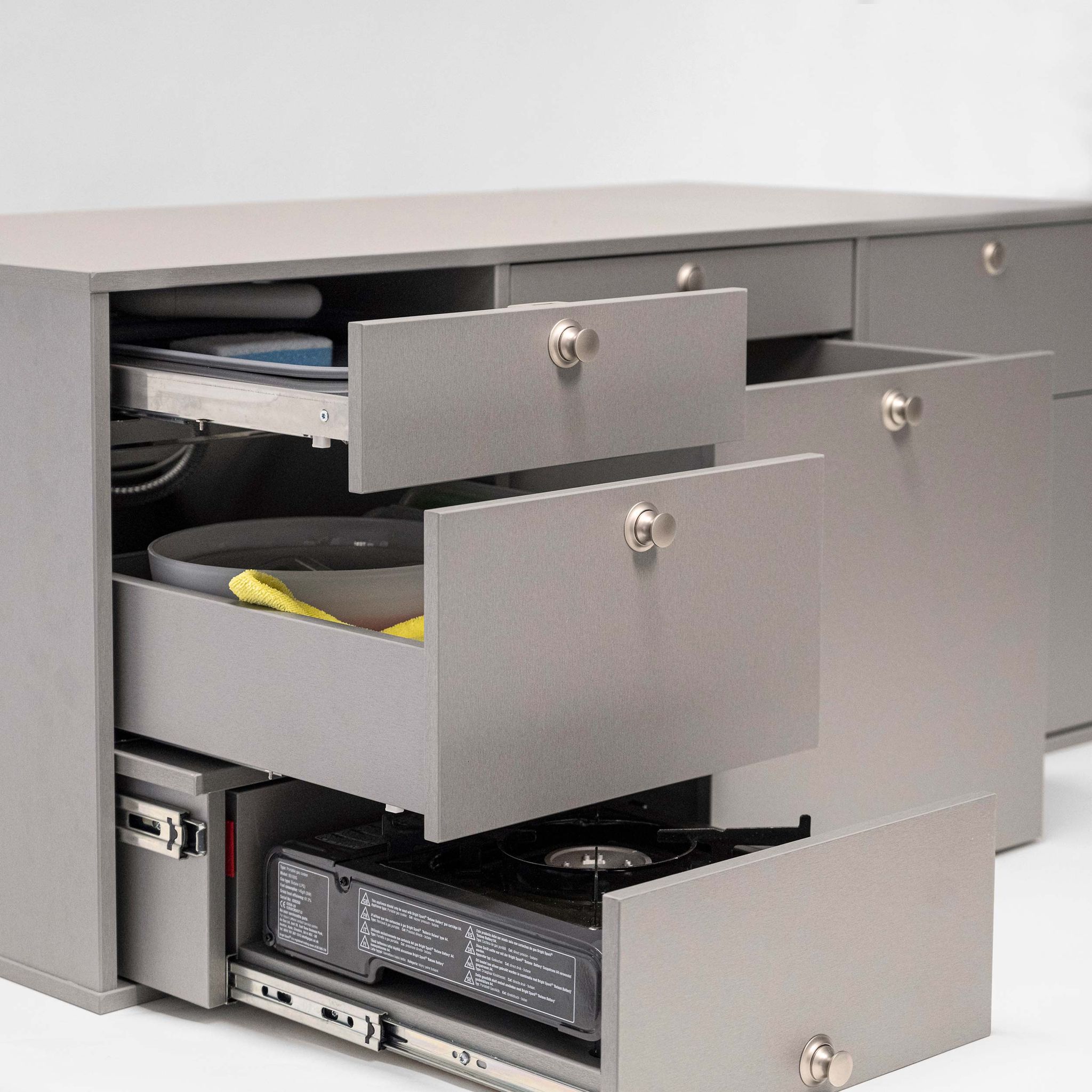 - Alle anderen Schubladen lassen sich auch während des Kochens öffnen