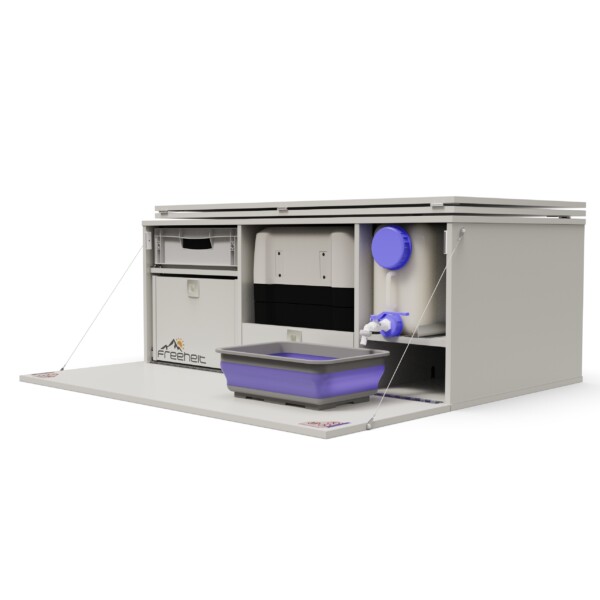 Egal ob mit Frontklappe oder Bettsystem, das Innenleben des Campingmoduls kannst Du ganz leicht online konfigurieren. Dies ermöglicht Dir einen günstigen Einstieg in die Welt der Campingabenteuer und Du kannst deine Campingbox später jederzeit Aus-, bzw umbauen. Und das Beste dabei ist, dass Du in den Fächern ohne Schubladen, handelsübliche Euroboxen verwenden kannst. Außerdem wird das Freeheit Flexicamp Campingmodul fix und fertig montiert zu Dir nach Hause geliefert. Das Flexicamp-System eignet sich prima wenn Dein Fahrzeug über einen durchgehenden Laderaumboden verfügt. Du kannst dann ganz ohne Aufwand, das Freeheit Bedrock Unterbausystem verwenden. Die Flexicamp Größen S,M und L unterscheiden sich lediglich in der Breite des rechten Fachs.
