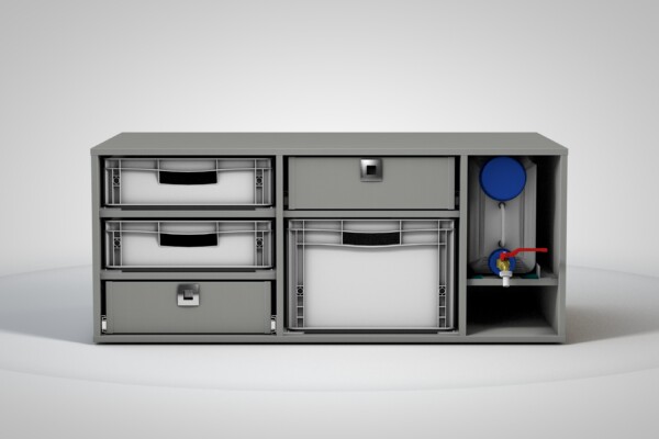 - Frei konfigurierbar zur Aufnahme von handelsüblichen Euro Stapelbehältern und oder Flexicamp Schubkästen - Beides kann beliebig gemischt werden