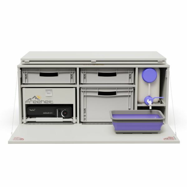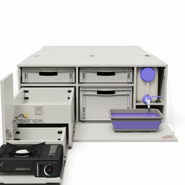 Einsteiger oder Campingprofi - Die freeheit Flexicamp Campingbox kannst Du ganz individuell Deinen Anforderungen. anpassen. Egal ob mit Frontklappe oder Bettsystem, das Innenleben des Campingmoduls kannst Du ganz leicht online konfigurieren. Dies ermöglicht Dir einen günstigen Einstieg in die Welt der Campingabenteuer und Du kannst deine Campingbox später jederzeit Aus-, bzw umbauen. Und das Beste dabei ist, dass Du in den Fächern ohne Schubladen, handelsübliche Euroboxen verwenden kannst. Das beste dabei ist, dass das Campingmodul fix und fertig montiert zu Dir nach Hause geliefert wird. Konfiguriere Deine persönliches Campingmodul unter https://www.freeheit.de/produkt-kategorie/kuechenmodule/flexicamp-konfigurator/flexicamp-einzelbauteile