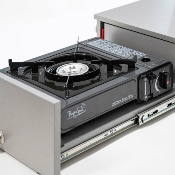 - Großzügige Ablagefläche neben dem Kocher zur Ablage von Kochgeschirr oder zur Zubereitung von Speisen oder kleinen Snacks (z.B. Schnelles Frühstück)